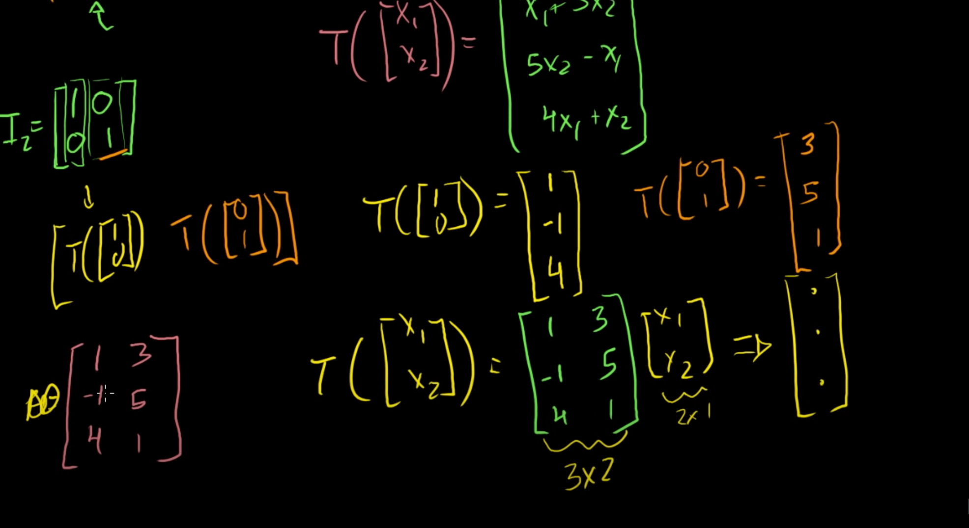 T([x1; x2]) = [1 3; -1 5; 4 1] [x1, x2] 로 표현할 수 있다.
