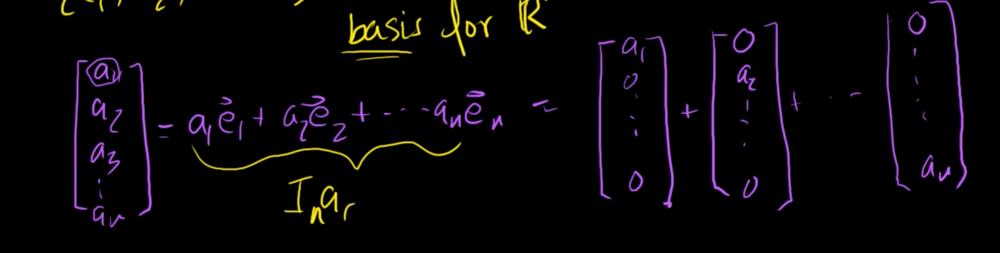 이 벡터를 만들 선형결합식은 a1 e1 + a2 e2 + ... + an en 의 합으로 표현이 된다.