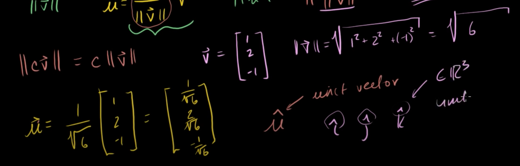 벡터를 벡터의 길이로 나눠서, v/(∥v∥)를 해주면, u라는 단위벡터를 구할 수 있다.