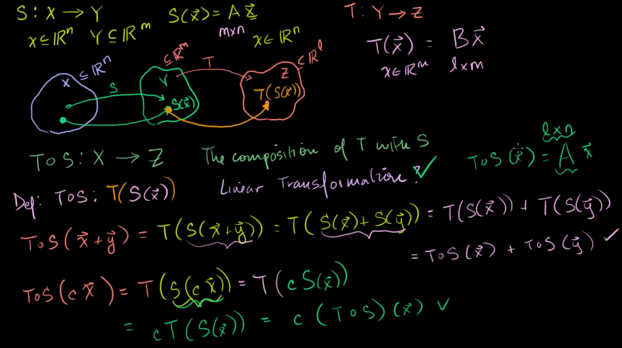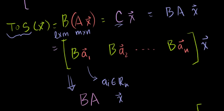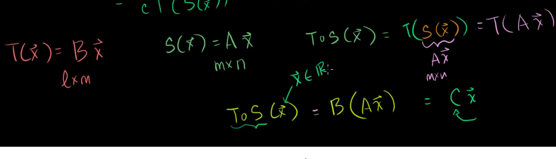 따라서, T°S(x) = Cx 와 같이 선형변환의 형태로 표현할 수 있고, C는 BA의 값과 같다.