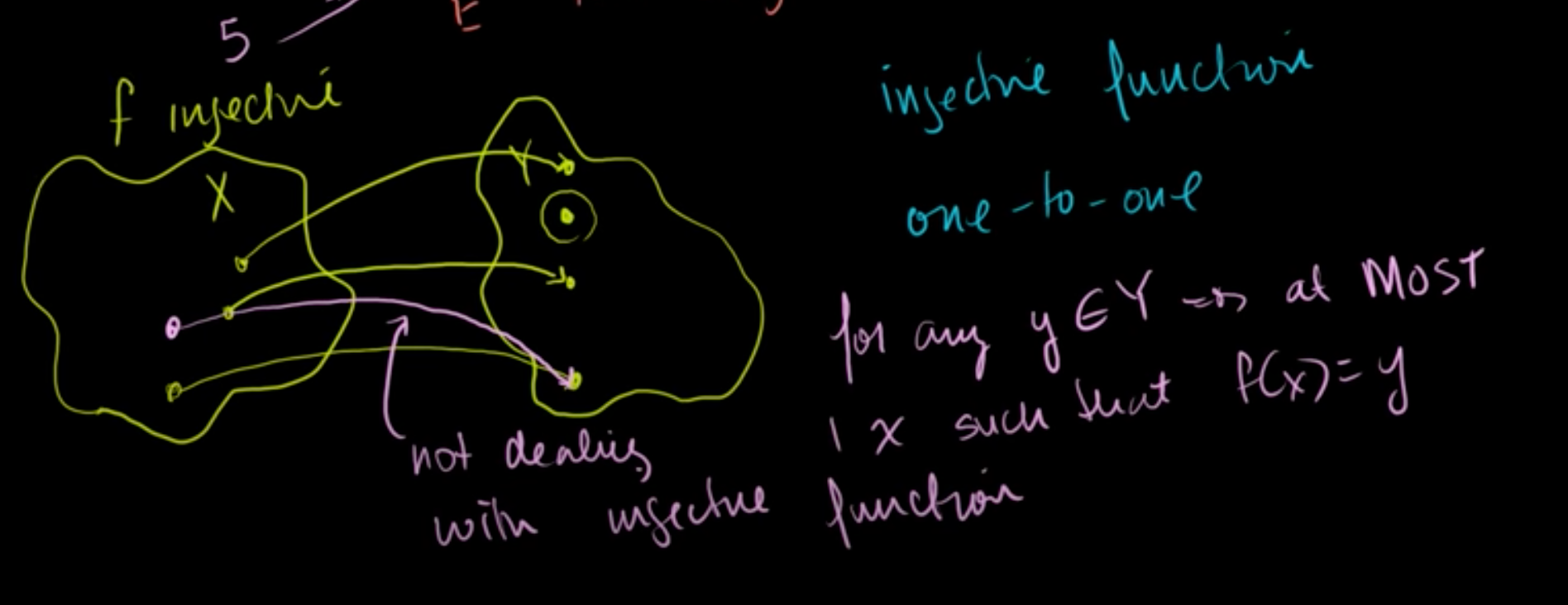 Y의 임의의 y에 대해 최대 1개의 x가 f(x) = y를 만족시킨다.