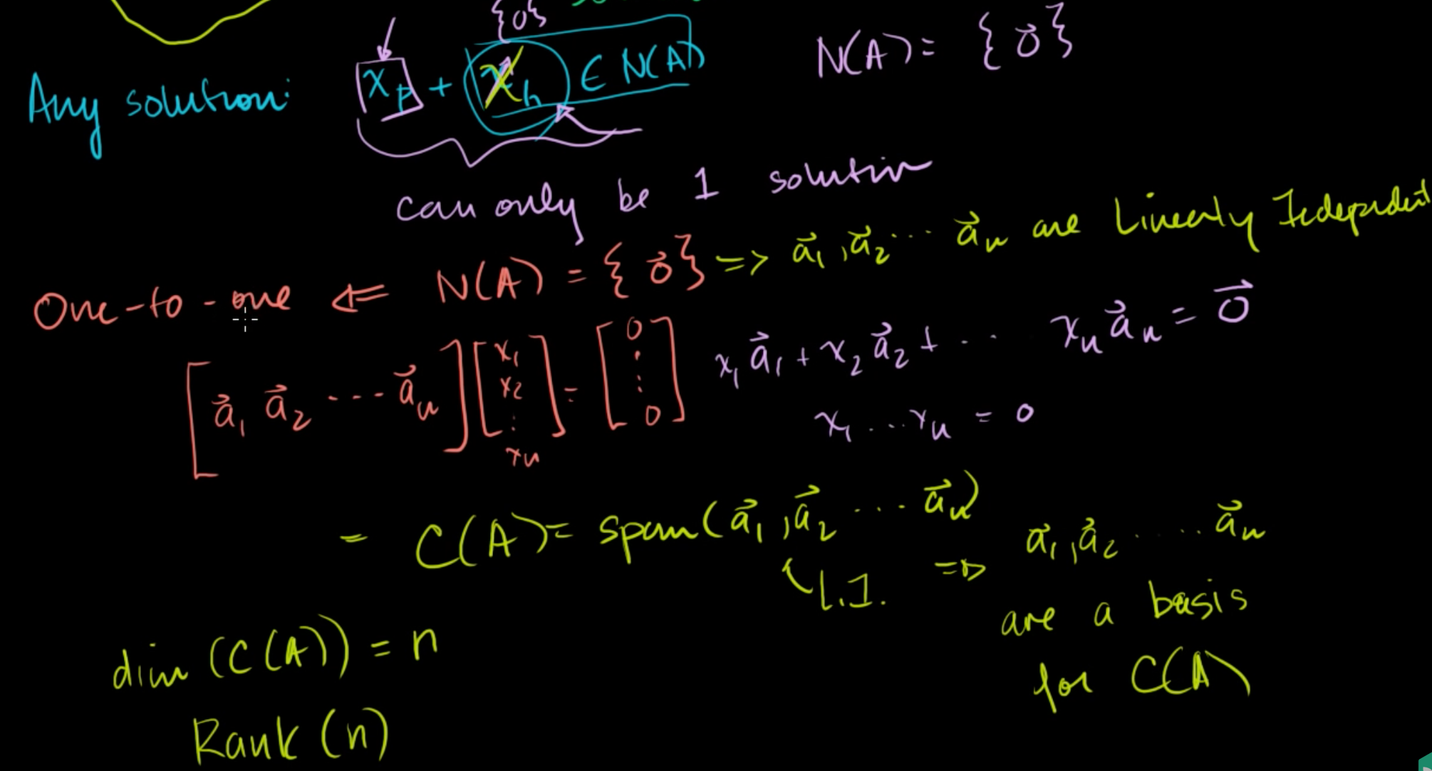 만약, a1, a2, ..., an이 선형 독립이라면 열공간(C(A))는 span(a1, a2, ..., an)과 같다.