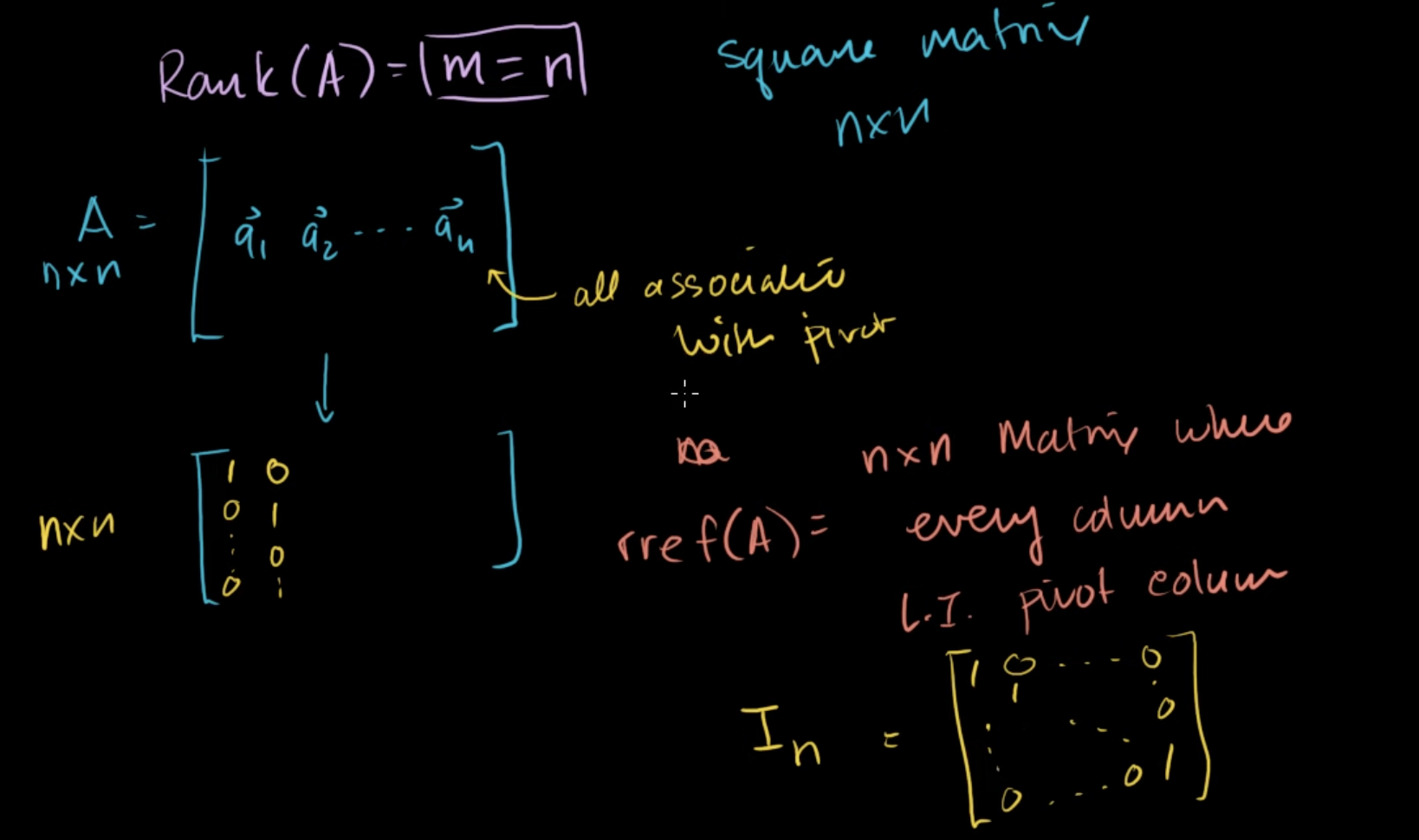 rref(A) = 모든 열들이 선형독립이면서 피벗 열인 n x n 행렬이 되고,