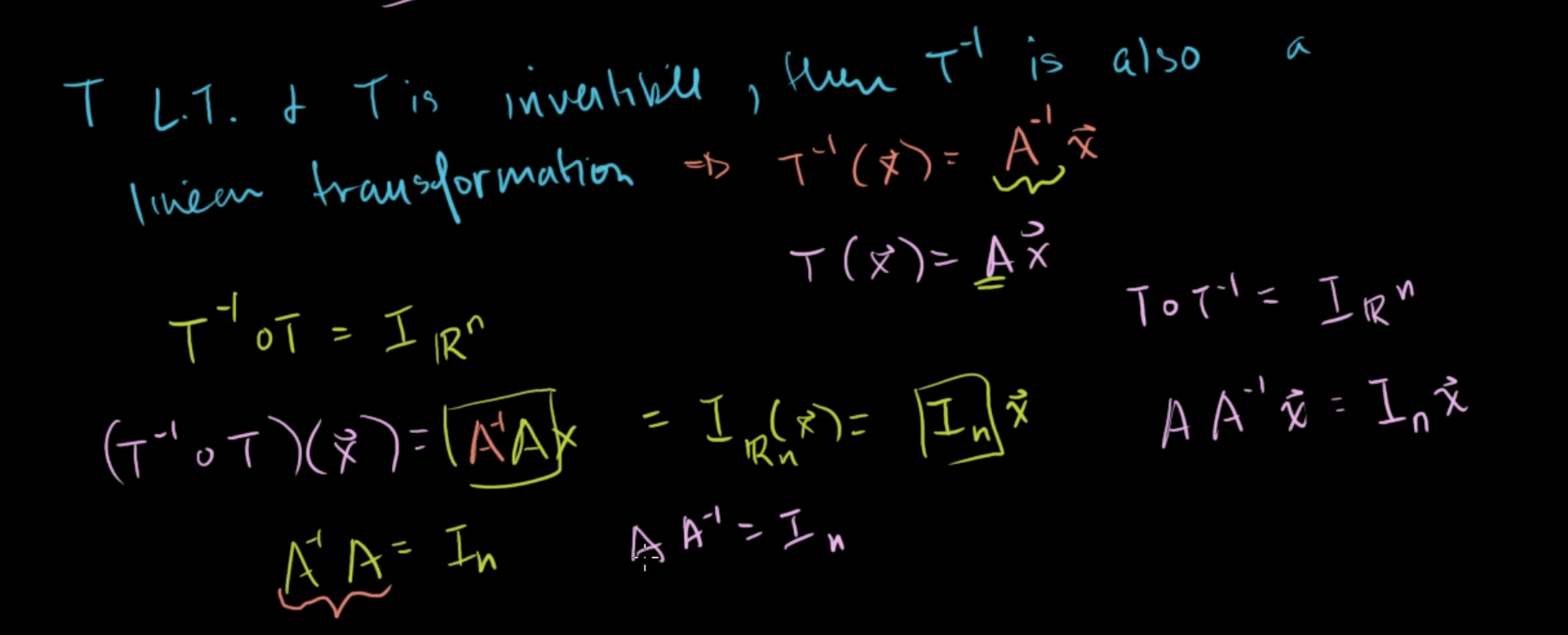 T-1∘T = In