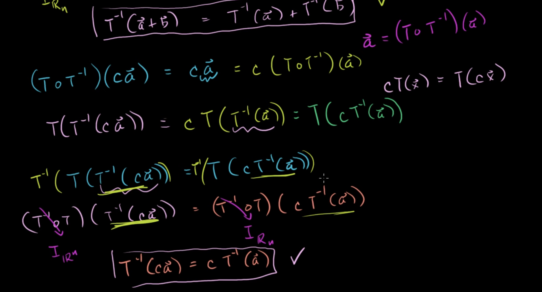 T(T-1(ca)) = cT(T-1(a)) -> 역행렬을 양변에 곱해준다