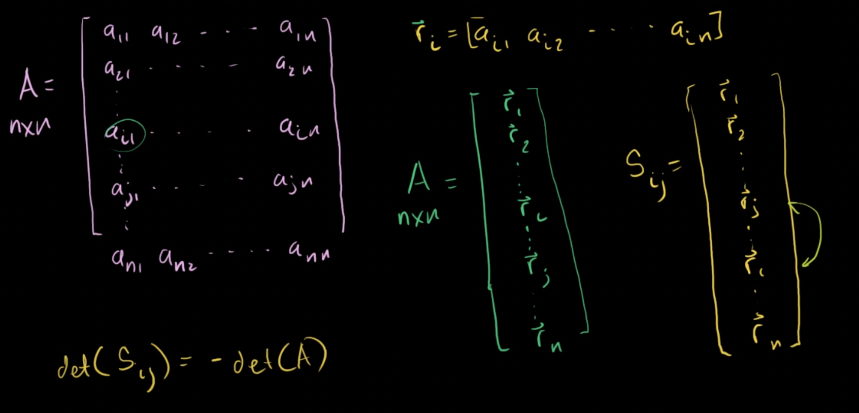 행렬 A를 행벡터의 형태로 표현해주면, A = [r1, r2, ..., ri, ..., rj, ..., rn]이다.
