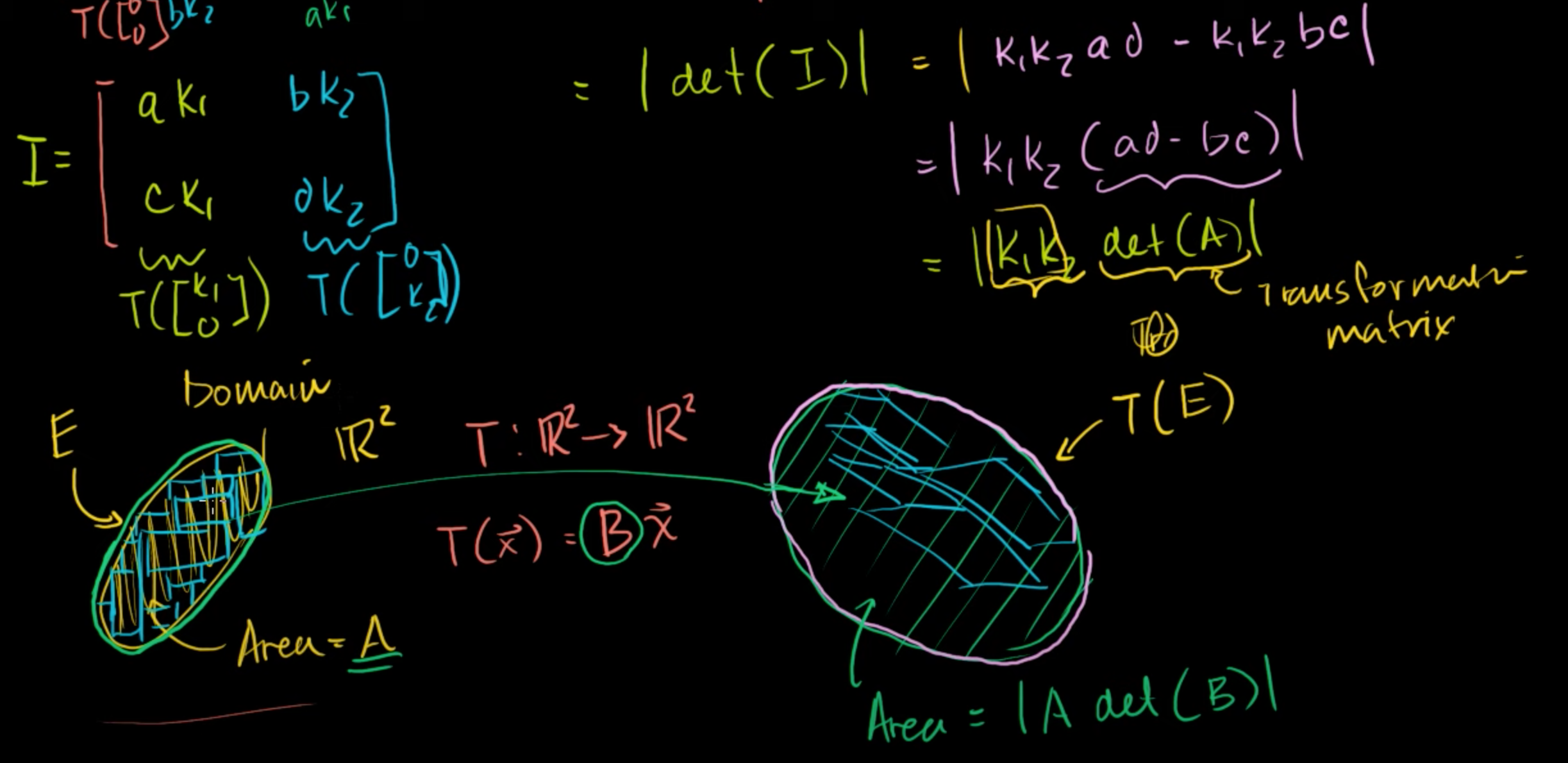 k1*k2는 원본 직사각형의 넓이였기 때문에, 변환 행렬의 행렬식만큼 넓이가 변화했다는 것으로 볼 수 있다.