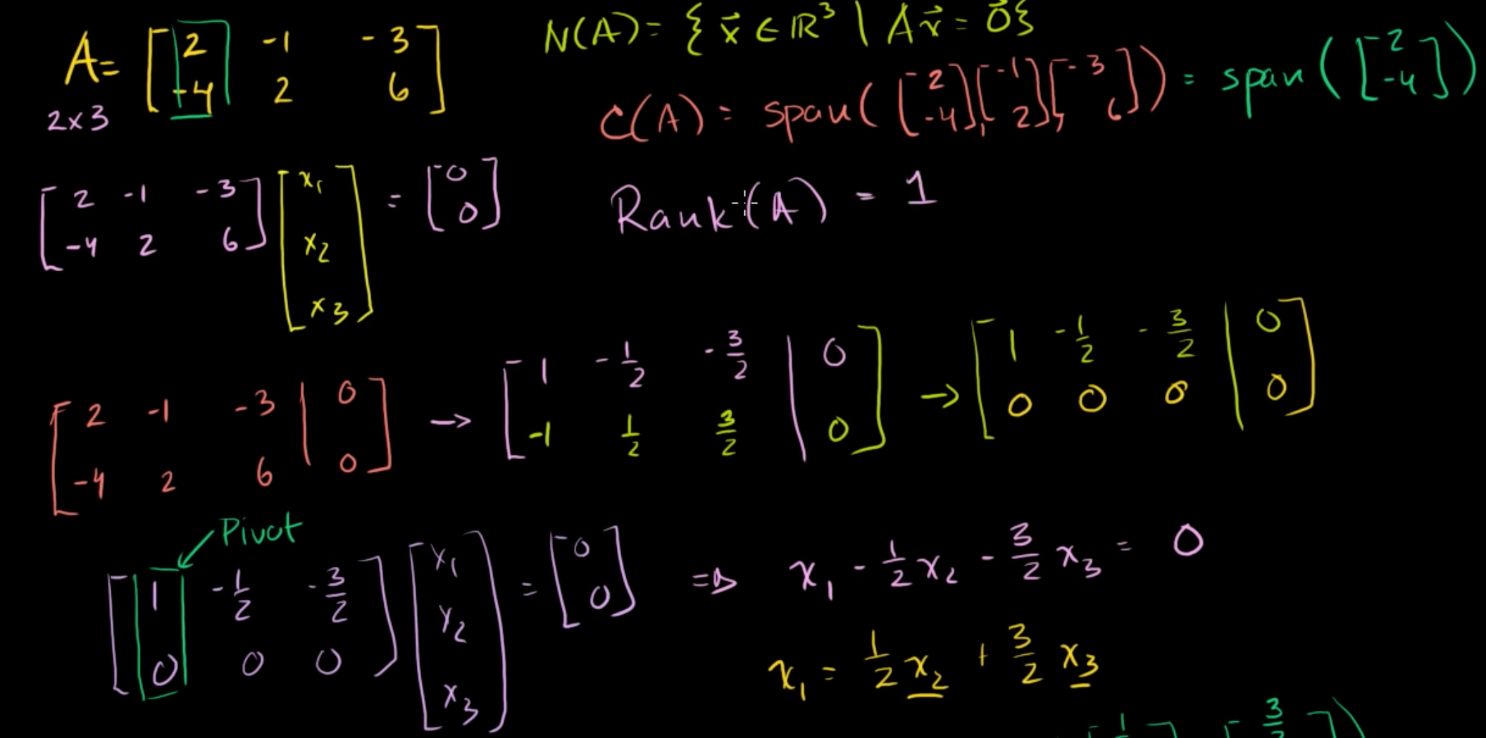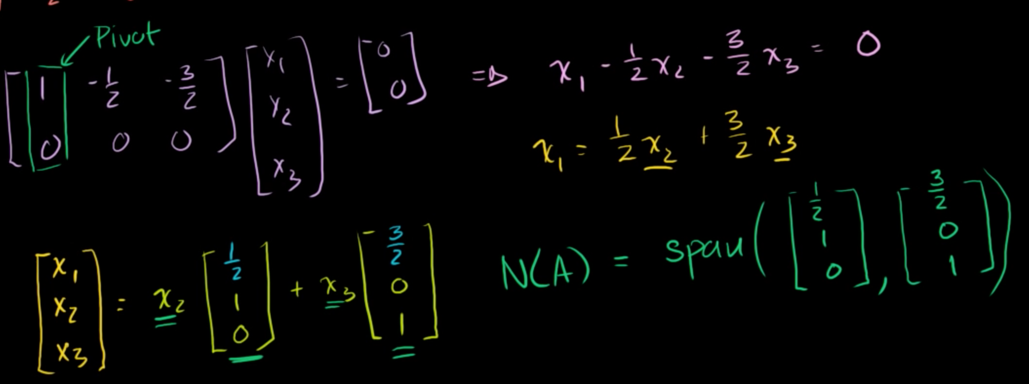 그러면 N(A) = span([1/2, 1, 0], [3/2, 0, 1])이 된다.