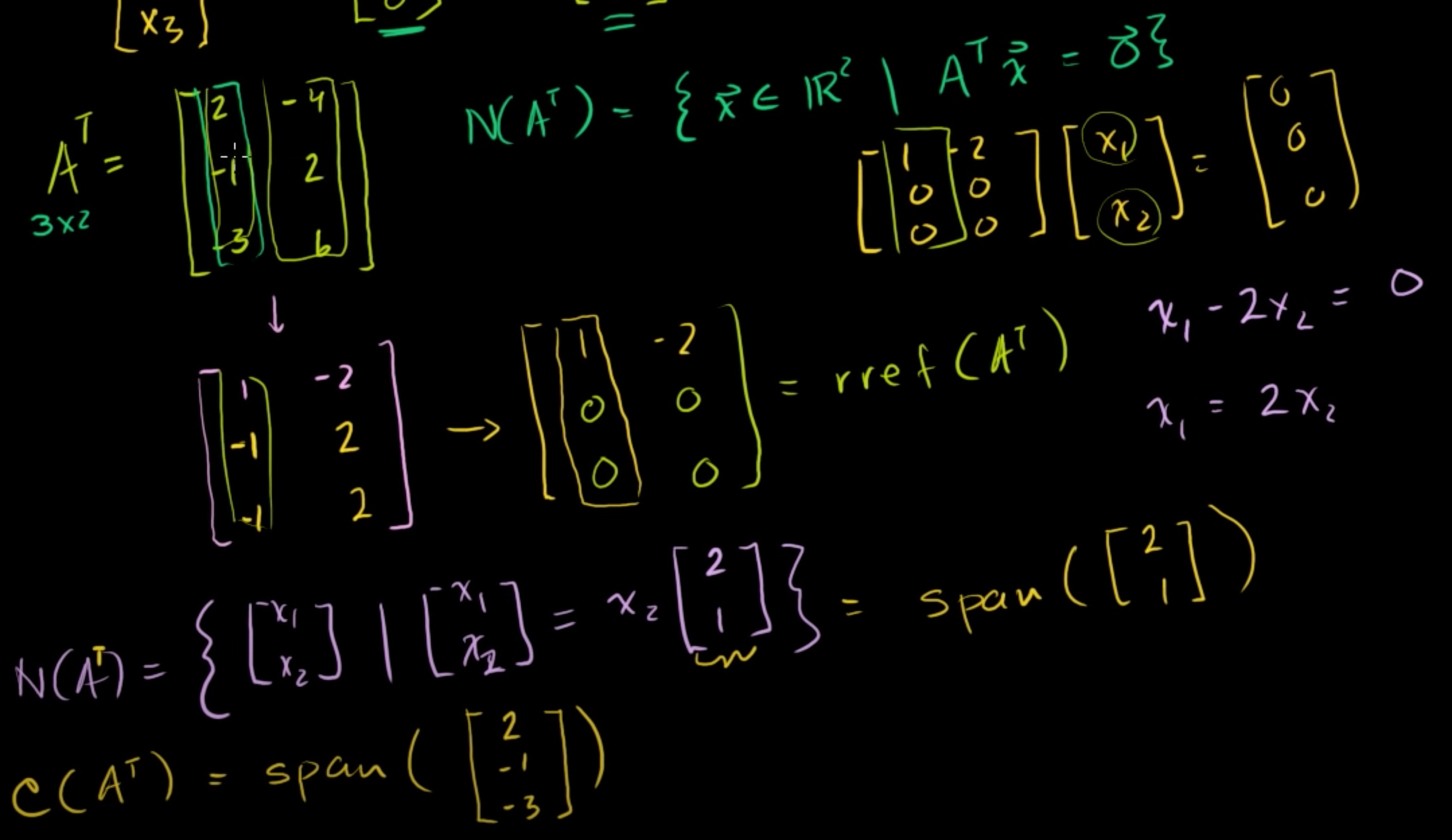 열공간 C(A) = span([2, -4], [-1, 2], [-3, 6])이고,
