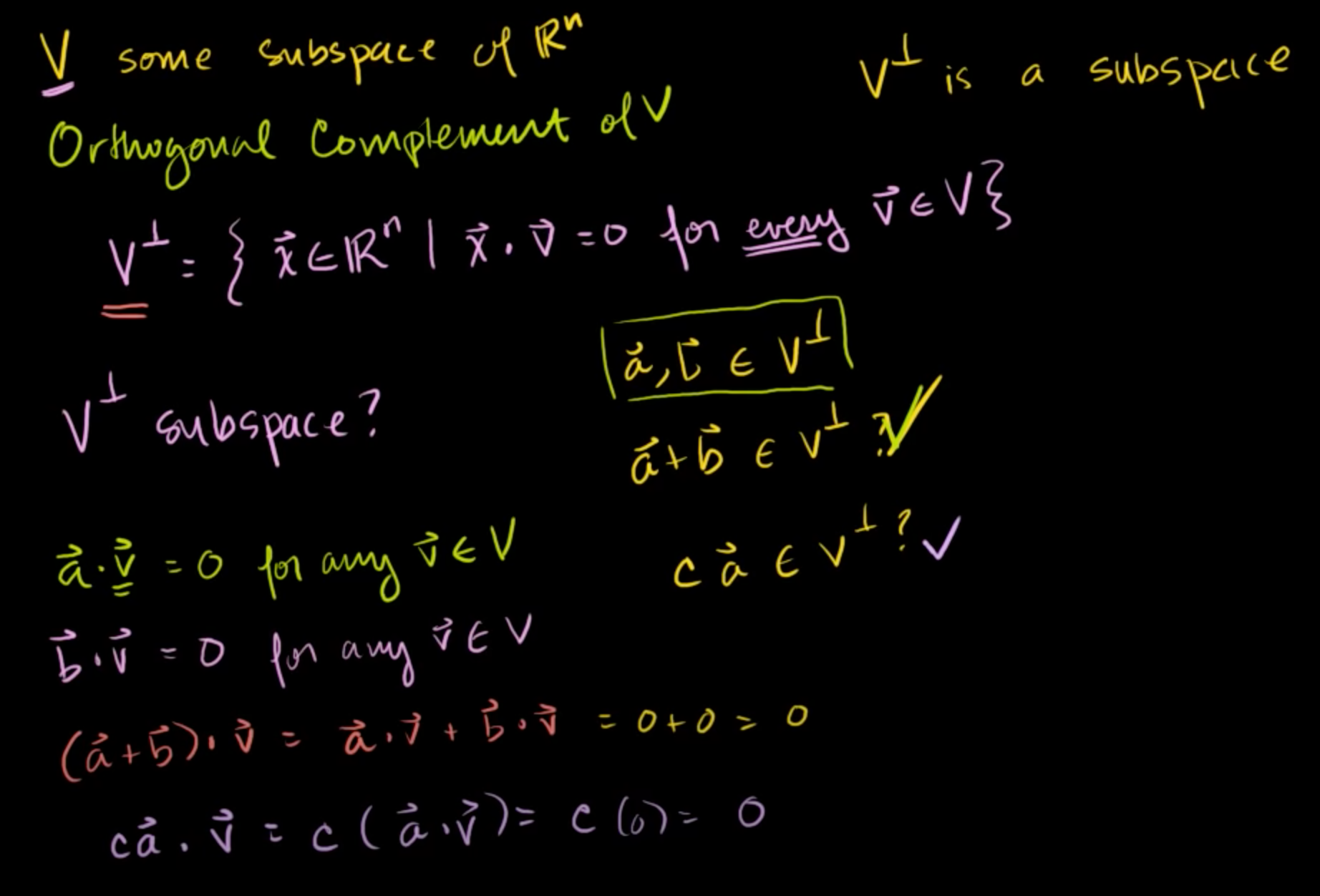 ca∙v = c(a∙v) = 0 (스칼라 곱에 닫혀있다)