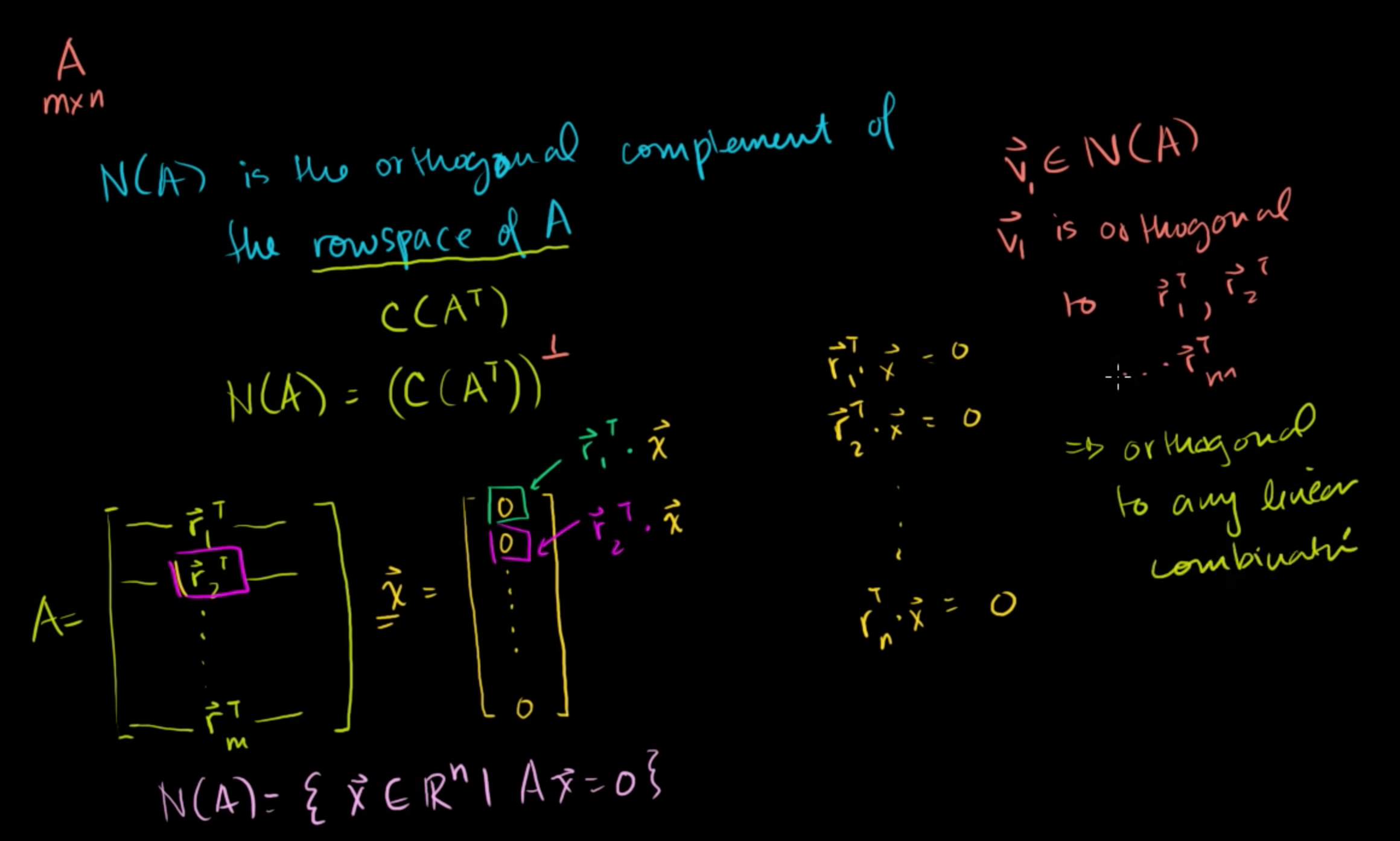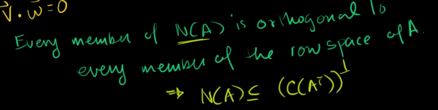 그리고, N(A)의 원소들의 선형결합과 행렬의 행들은 직교한다는 뜻이다.