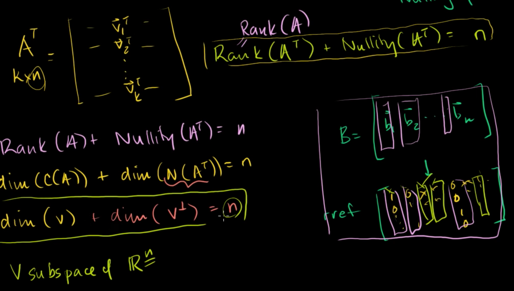 그래서 V의 수직성분의 차원을 알고 싶다면, A의 좌영공간을 구하거나 열공간의 수직성분을 알면 된다.
