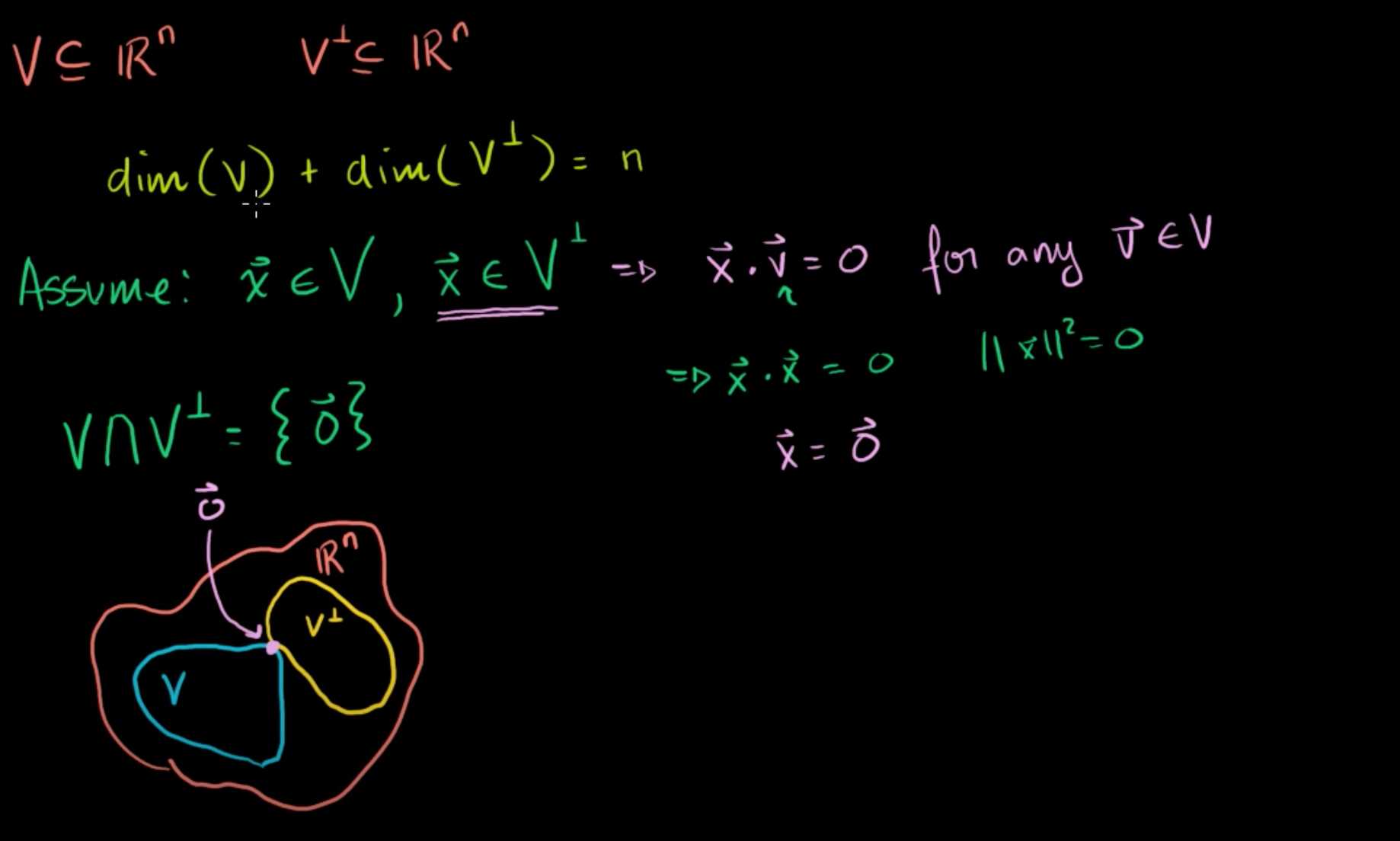 앞에서 정리한 것처럼 dim(V) + dim(V⊥) = n이다.
