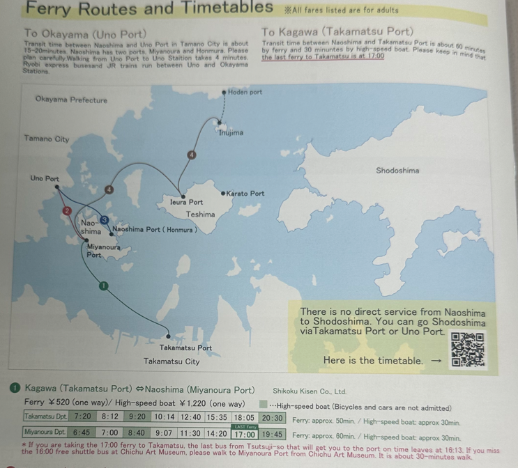 12시 40분 배를 타고 나오시마로 이동했다. (인당 520엔)