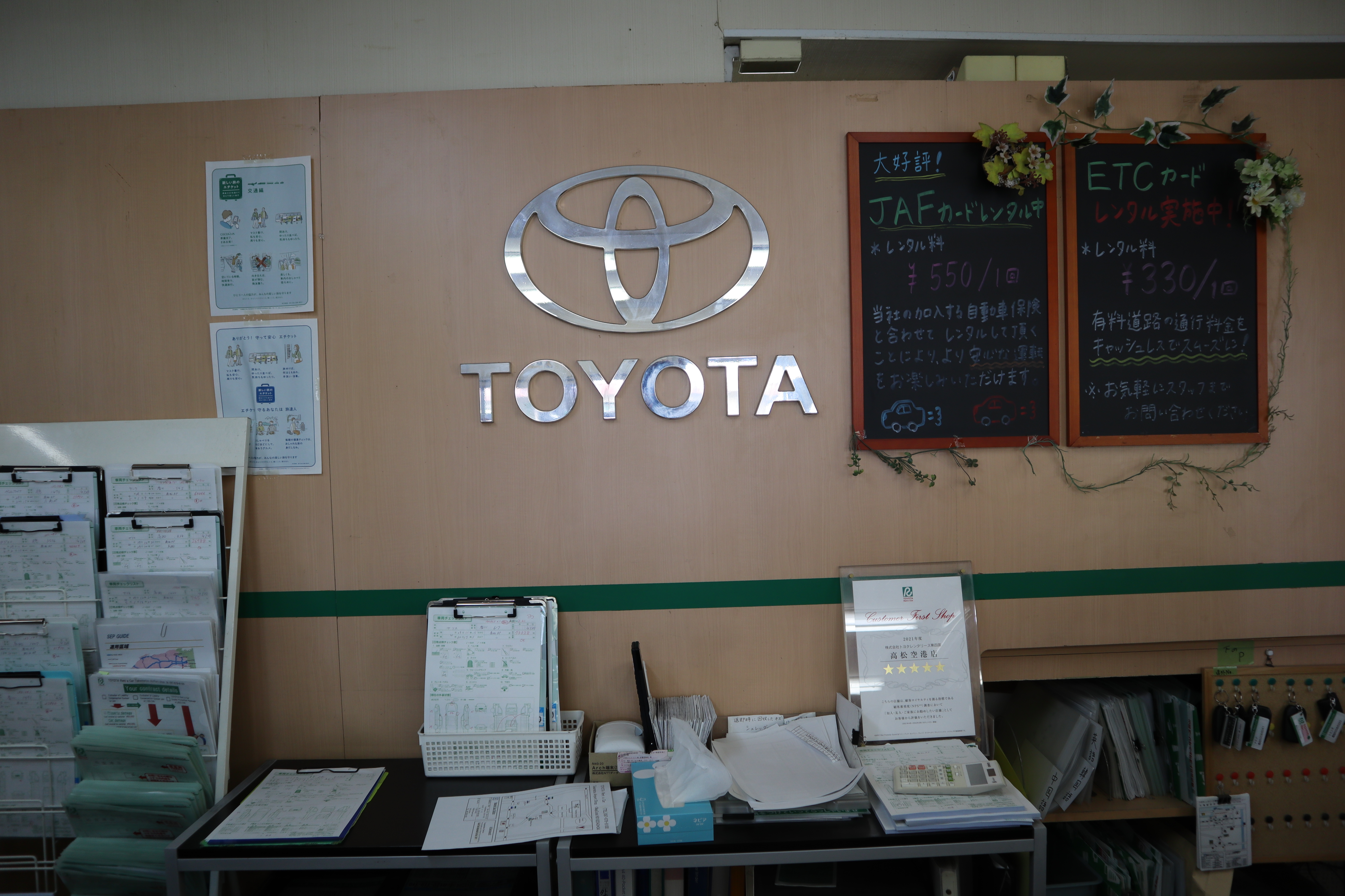 ATM 바로 옆에 렌터카 부스가 주르륵 있는데, 거기서 도요타렌터카에 가서 이름을 말하면 차를 태워서 렌터카 업장까지 데려다준다.
