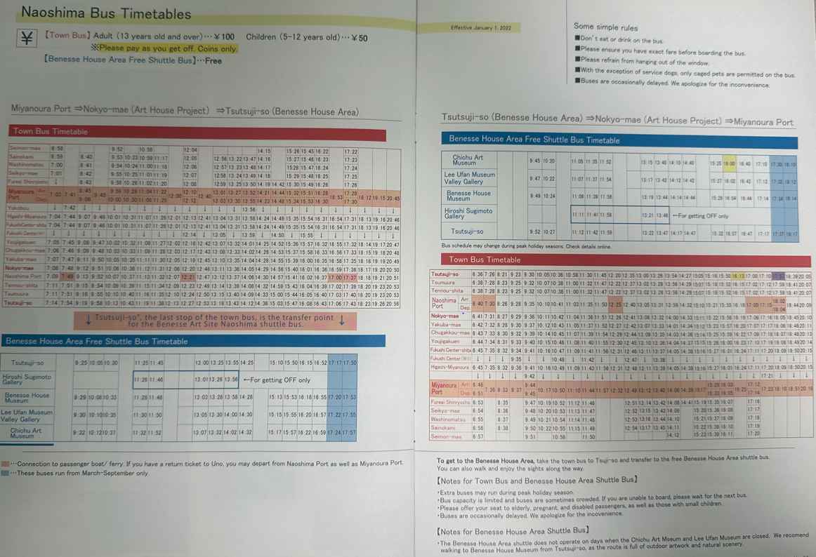 버스도 시간이 정해져있으니 꼭 확인하자. (인당 100엔, 잔돈은 주지 않으니 꼭 100엔을 만들어 가자)