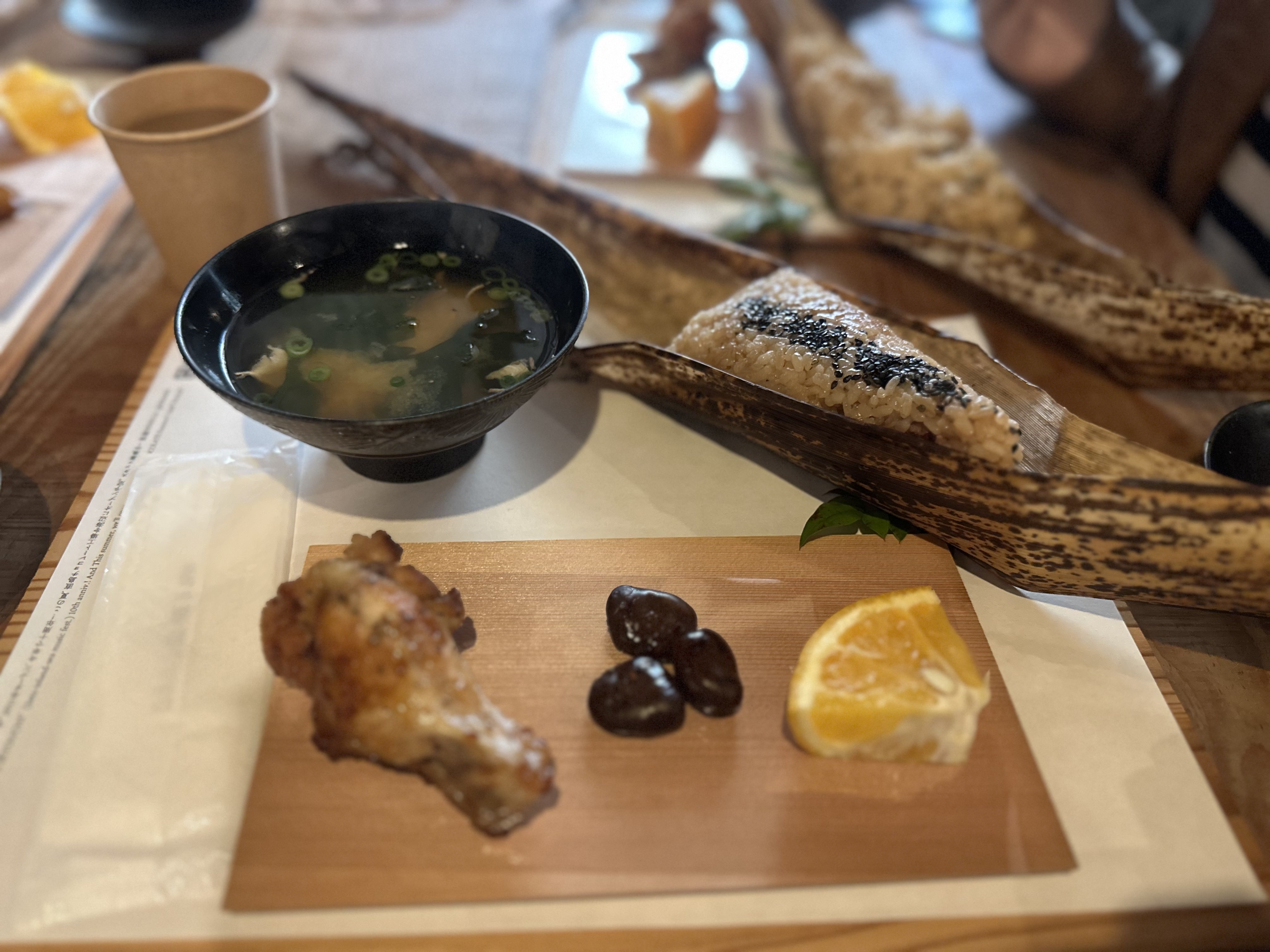 문어밥 아니면 멸치밥 중 택 1, 닭봉, 콩3알, 말라비틀어진 오렌지를 주고 1200엔을 받는다.