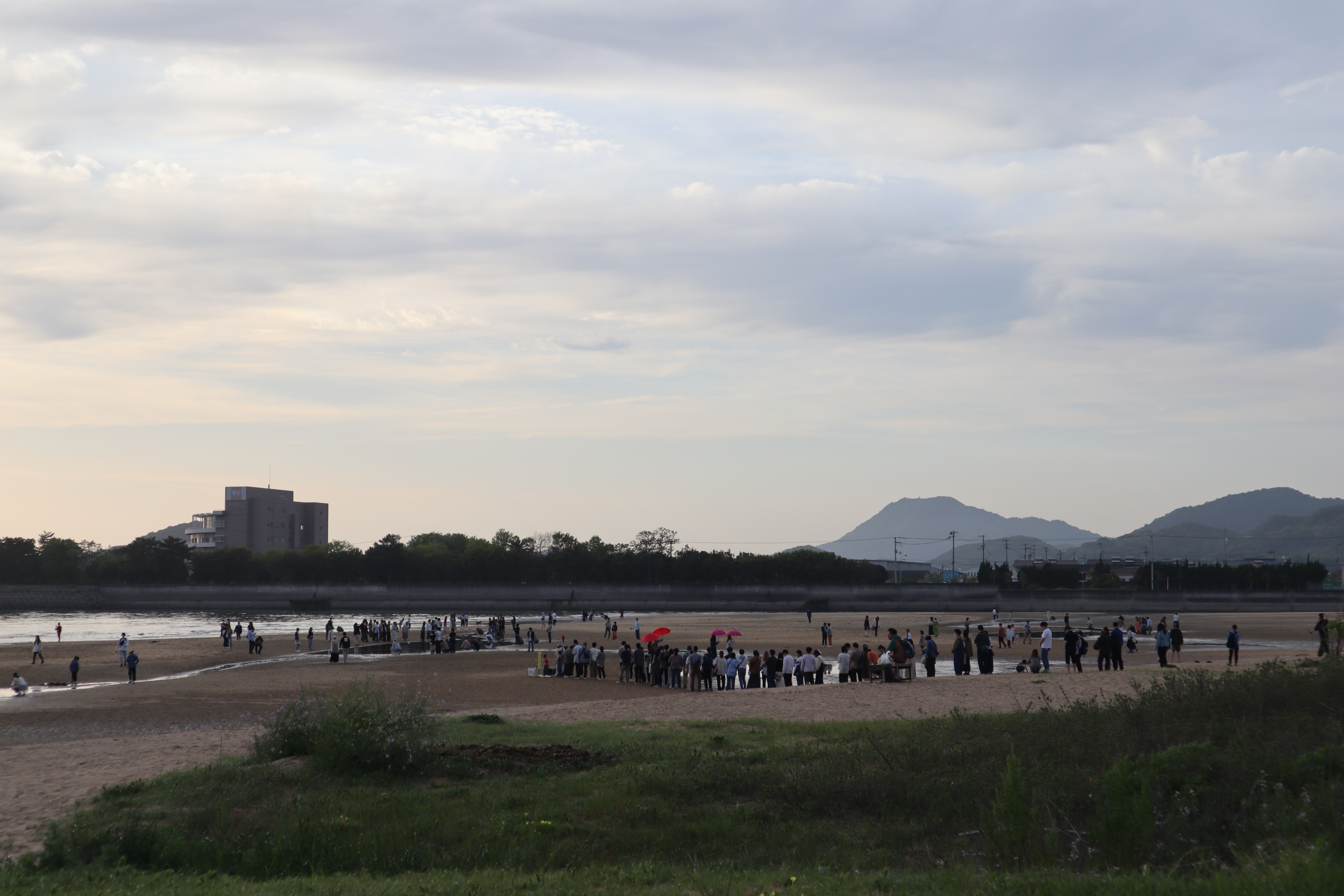 물에 비친 하늘과 노을 + 사람의 잔상이 엄청 아름답다.