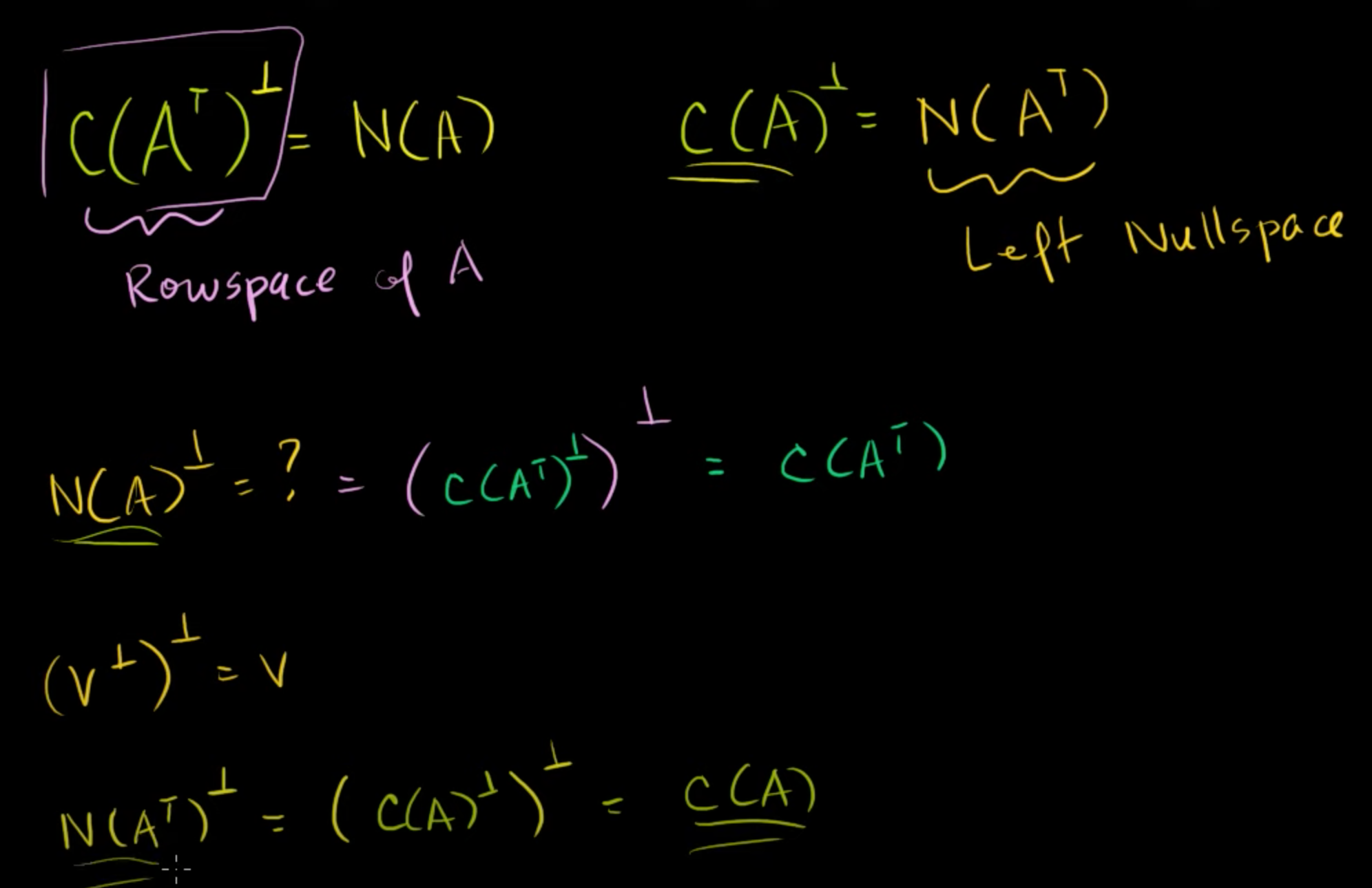 N(A)⊥ = (C(AT)⊥)⊥ = C(AT).