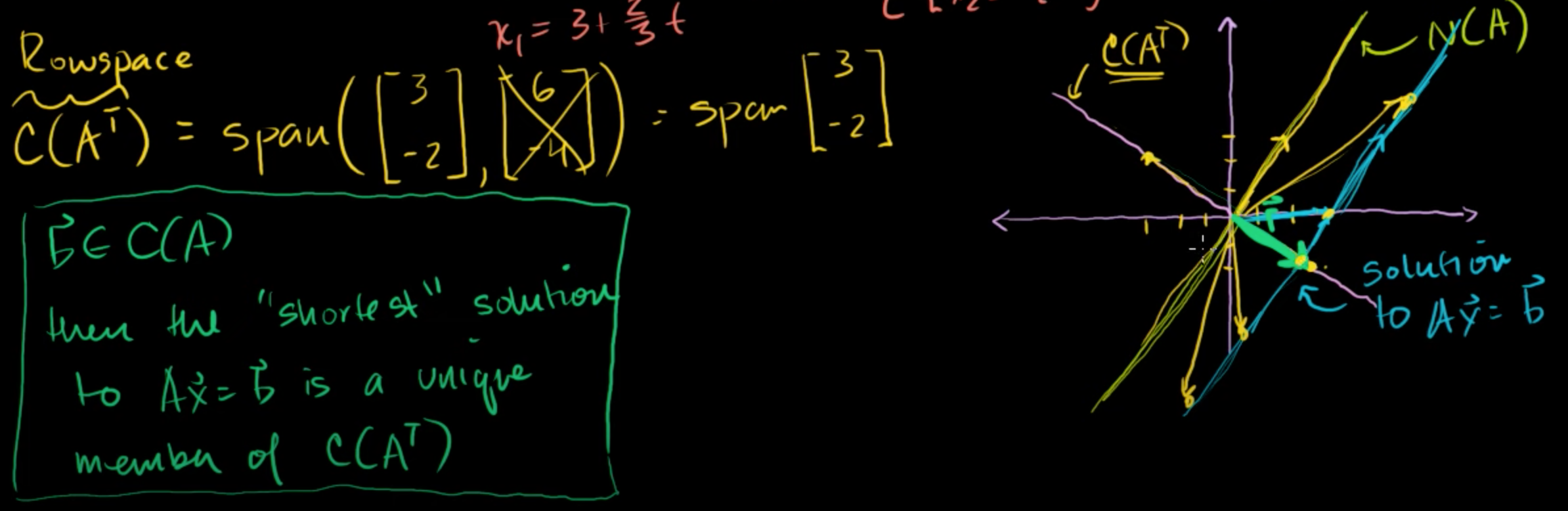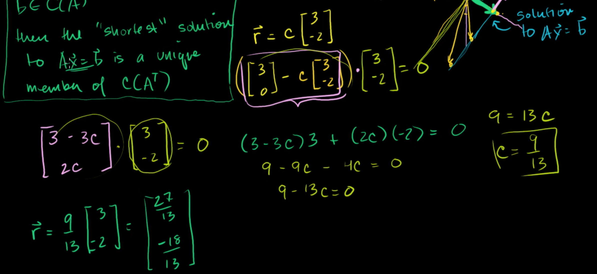 C(AT)가 span([3, -2]) 이기 때문에, 가장 짧은 벡터 r = c[3, -2]로 나타낼 수 있다.