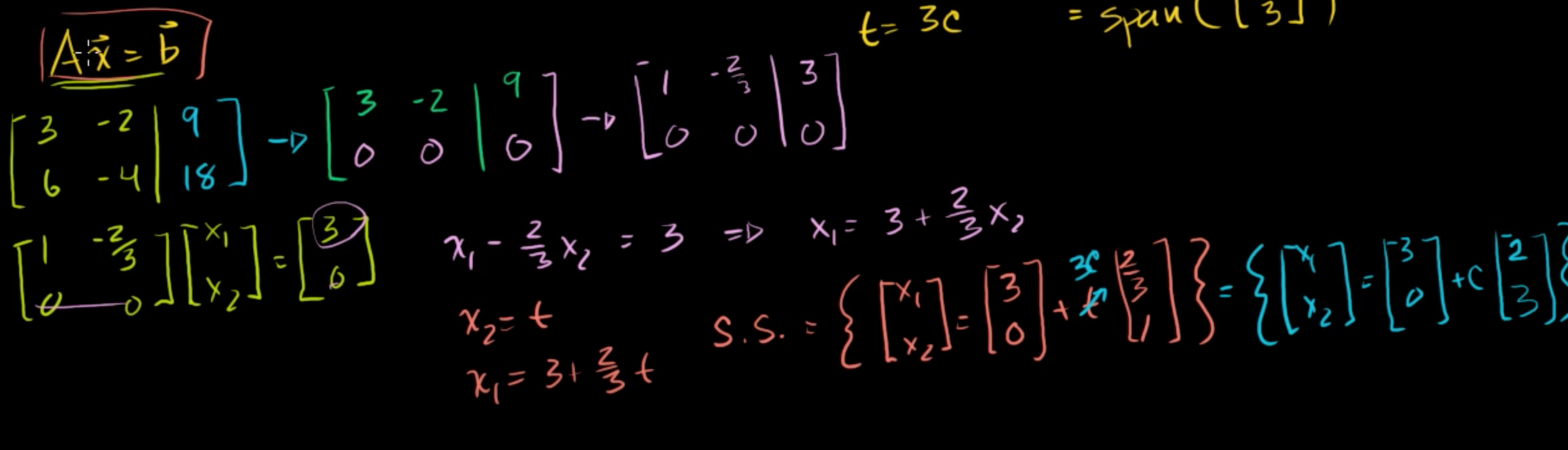 Ax=b의 해집합이 [3, 0] + span([2, 3]) 이었다.