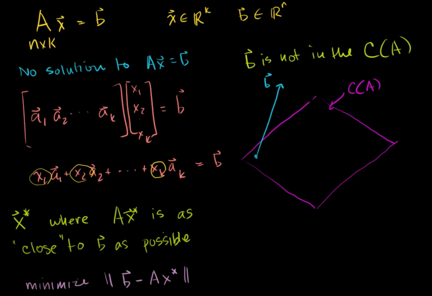 임의의 x*이 있고, Ax*은 C(A) 상에 존재하며 (=해가 존재한다), b와 가장 가까운 x*은 어떻게 구할까?