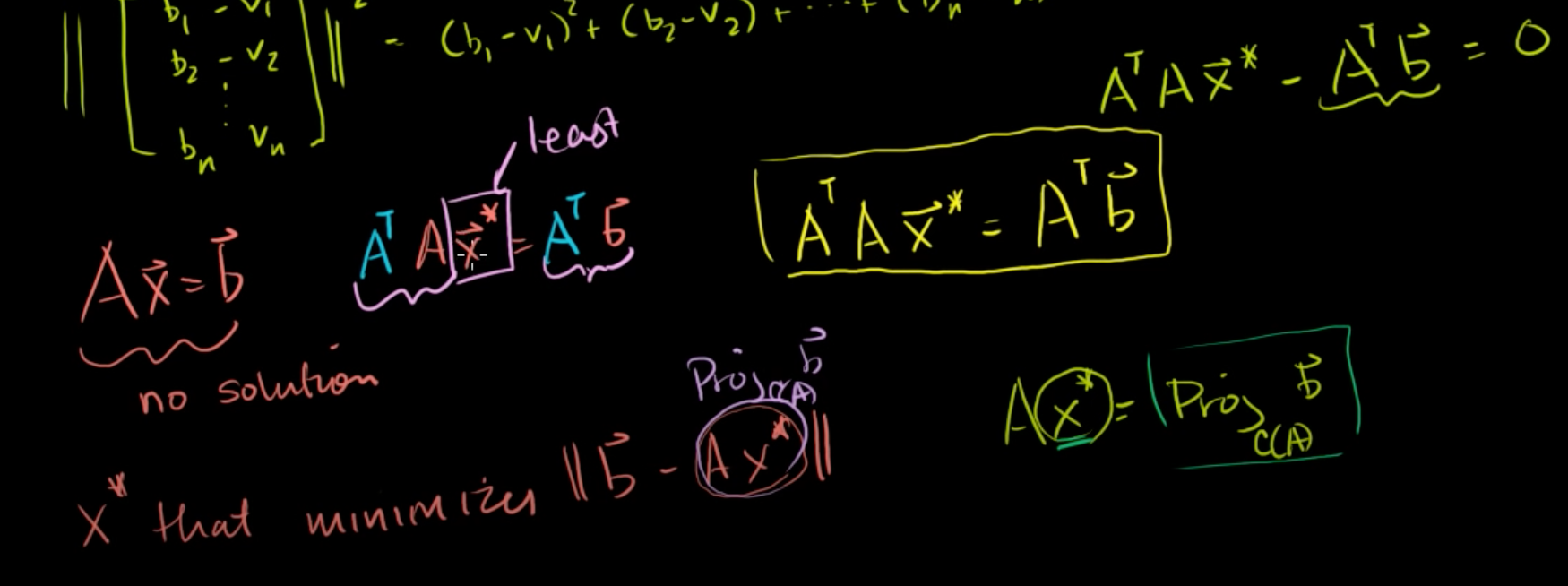 이를 만족하는 x*를 구하면, b와 Ax*의 거리를 최소화하는 x*를 구할 수 있다.