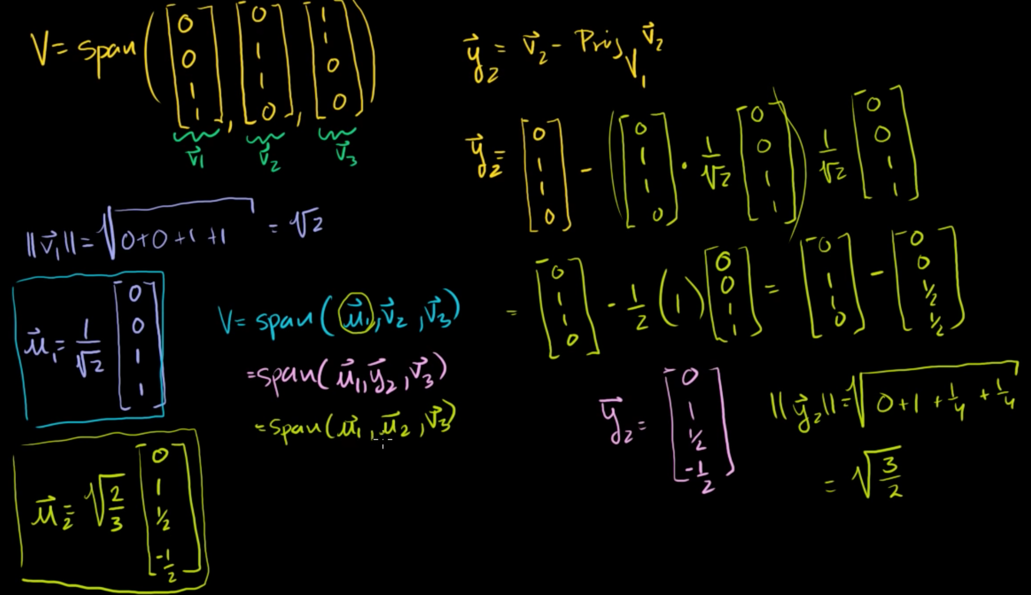 = span(u1, y2, v3) - u1은 정규화되었고, y2는 직교기저이다.