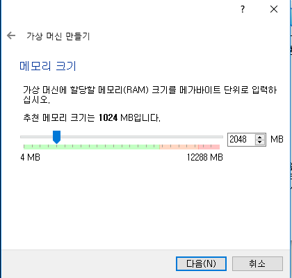 3. 메모리 크기는 2048MB (마음대로 설정해도 된다. 1024 또는 2048을 추천)