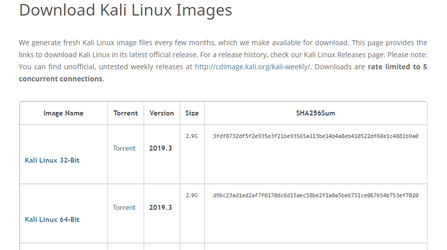 칼리리눅스는 https://www.kali.org/downloads/ 여기에서 다운받도록 하자.