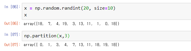 2) 가장 작은 값 n개 찾기. np.partition( )
