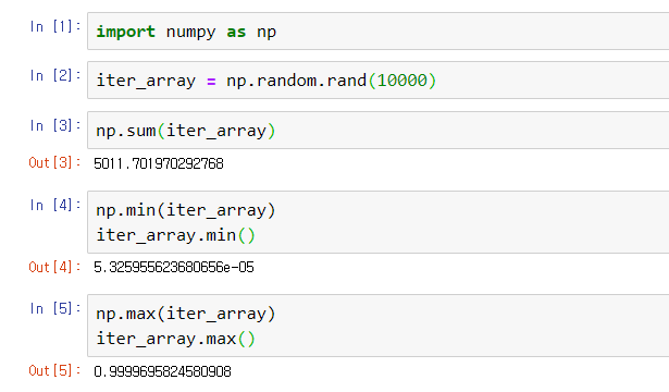 1) 기본적으로 python 연산보다 numpy 내장 메소드를 사용하는 것이 빠르다.