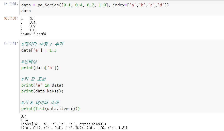 인덱스를 키라고 생각한다면, Series배열은 딕셔너리형 객체라고 생각해도 무방하다.