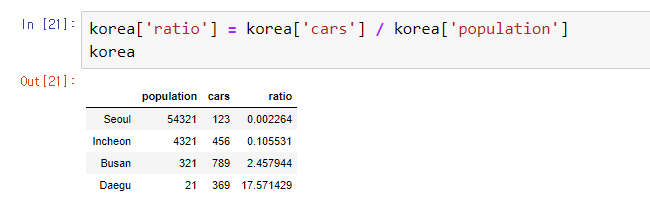 열을 추가해보자. (1인당 차 개수)