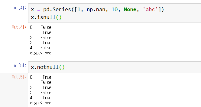 isnull에서는 null값이 있으면 True, 없으면 False.