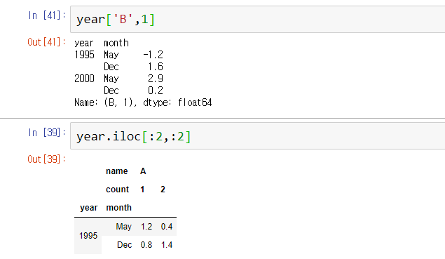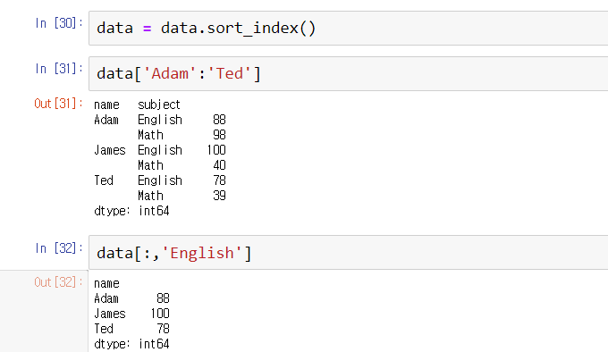 멀티 인덱스에서 슬라이싱을 하기 위해서는 반드시 정렬이 되어 있어야 한다.