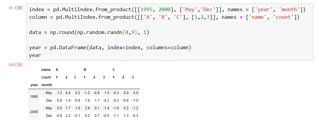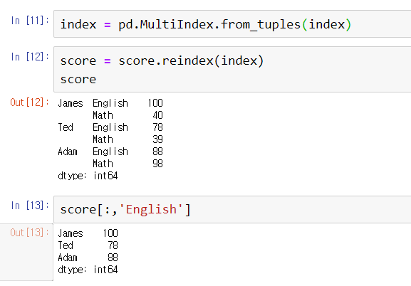 다음과 같이 인덱스를 MultiIndex로 만들어주고, 리인덱싱을 하면 다음과 같이 만들어 지게 된다.