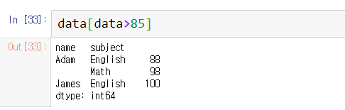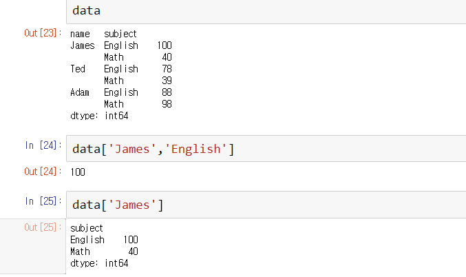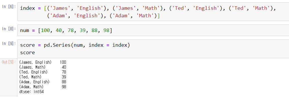 인덱스가 사람이름, 교과목명 2가지인 경우, 다음과 같이 만들 수 있다.