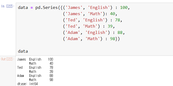 2) Series에서는 튜플을 키 딕셔너리로 전달함.