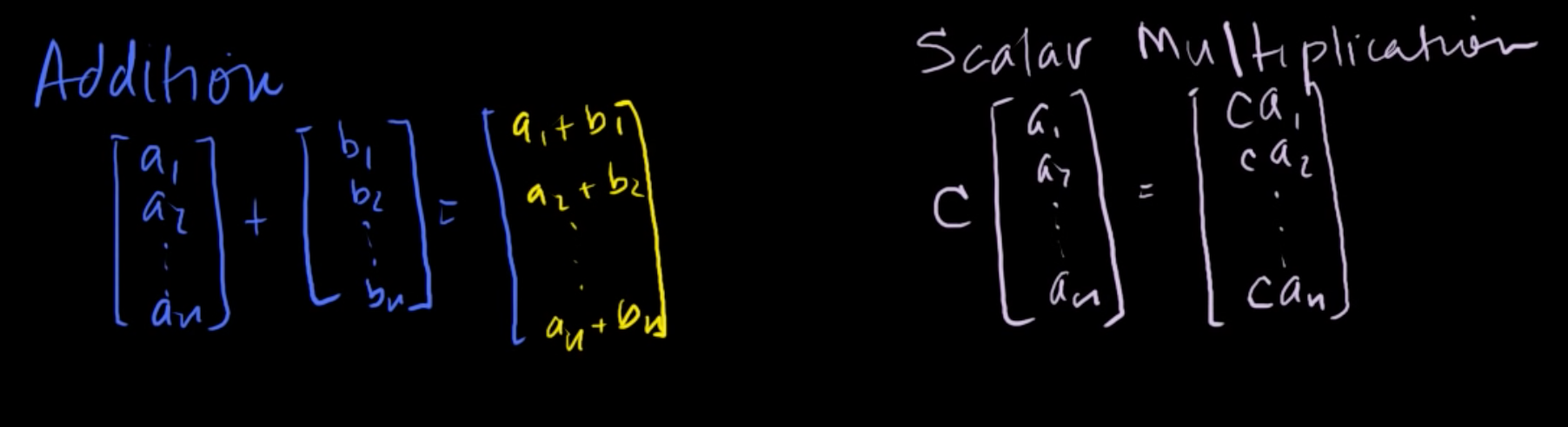a1, a2부터 an까지의 값을 가지는 벡터와 b1, b2부터 bn까지의 값을 가지는 벡터를 더한다면, 단순히 두 벡터들의 대응되는 성분들을