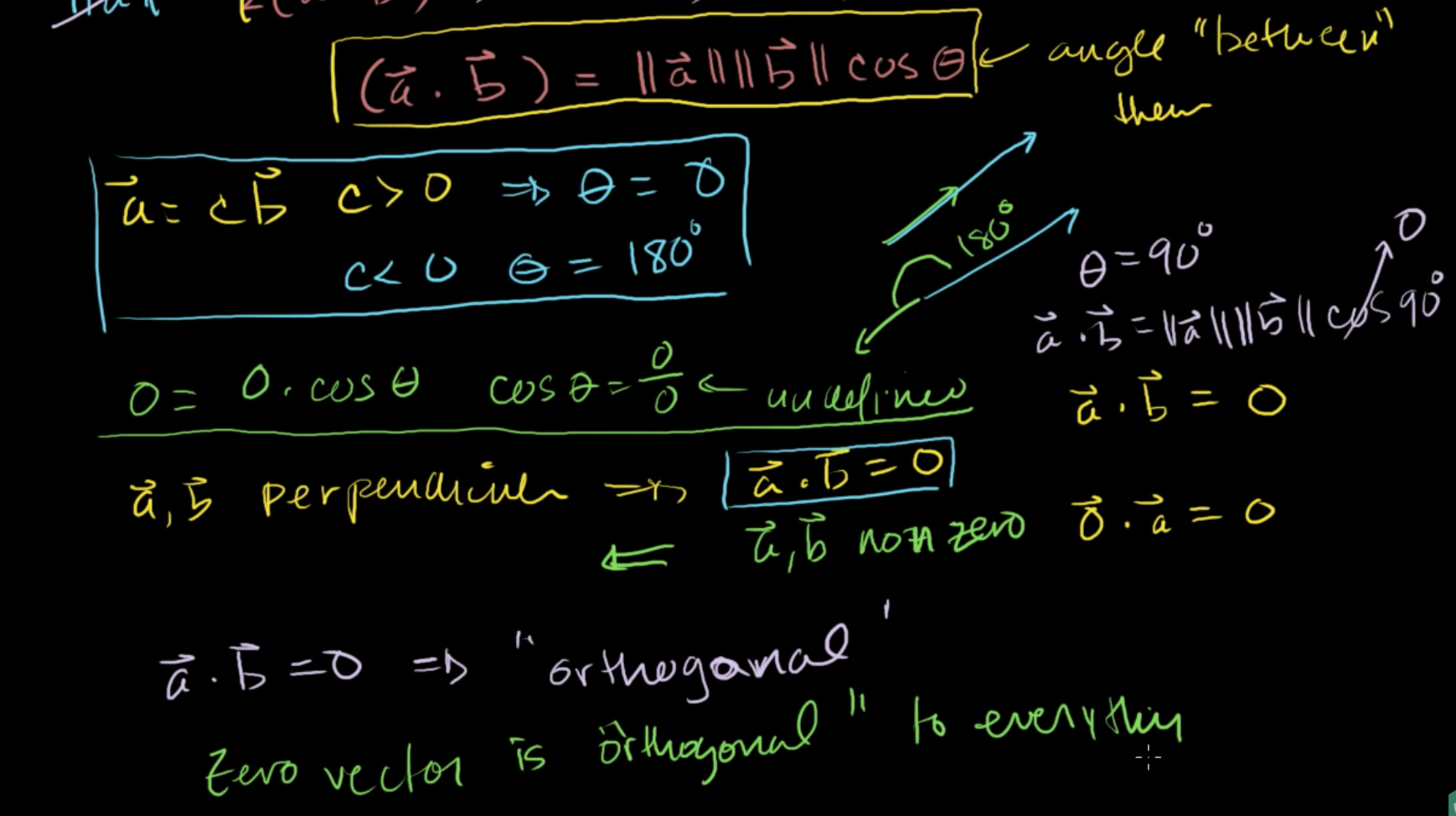 a가 c가 0보다 작으면서 동일선상에 있는 벡터 b와의 곱이라면, θ = 180이 될 것 입니다.