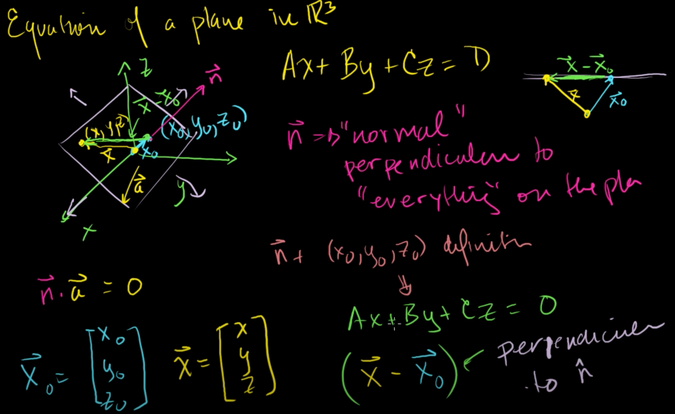 x0와 x는 둘 다 원점에서 시작하며, 면 상의 한 점을 가르키는 위치벡터이다.