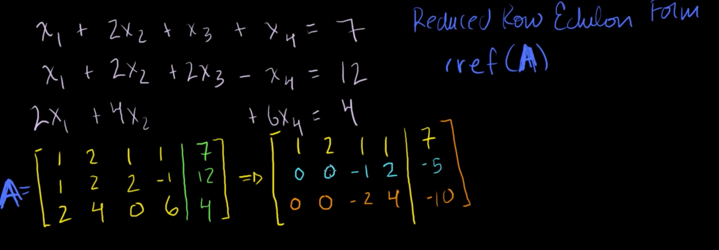 [0 0 -2 4 | -10]] 이라는 행렬을 구할 수 있다.