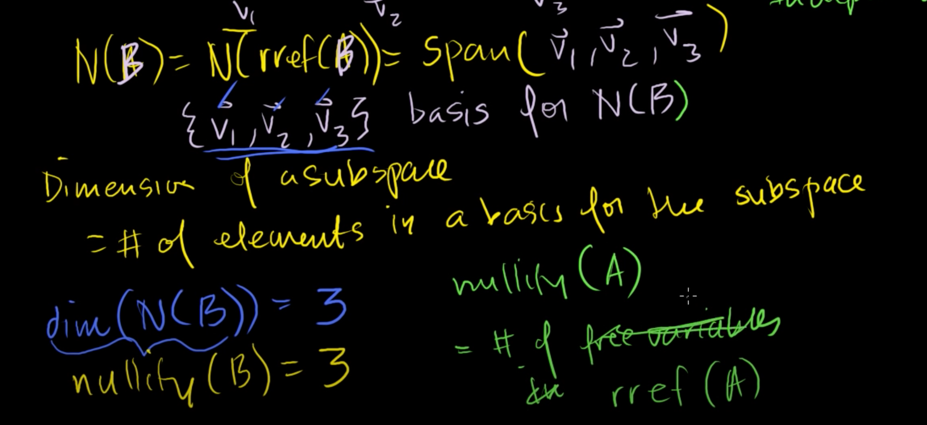 그래서 자유변수의 개수는 영공간의 basis 벡터의 개수가 된다.