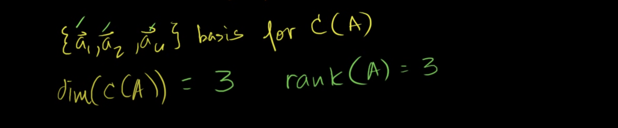 다른방법으로 생각하자면 A의 랭크는 모든 열공간을 생성하는 선형독립인 열 벡터들의 개수를 말한다.