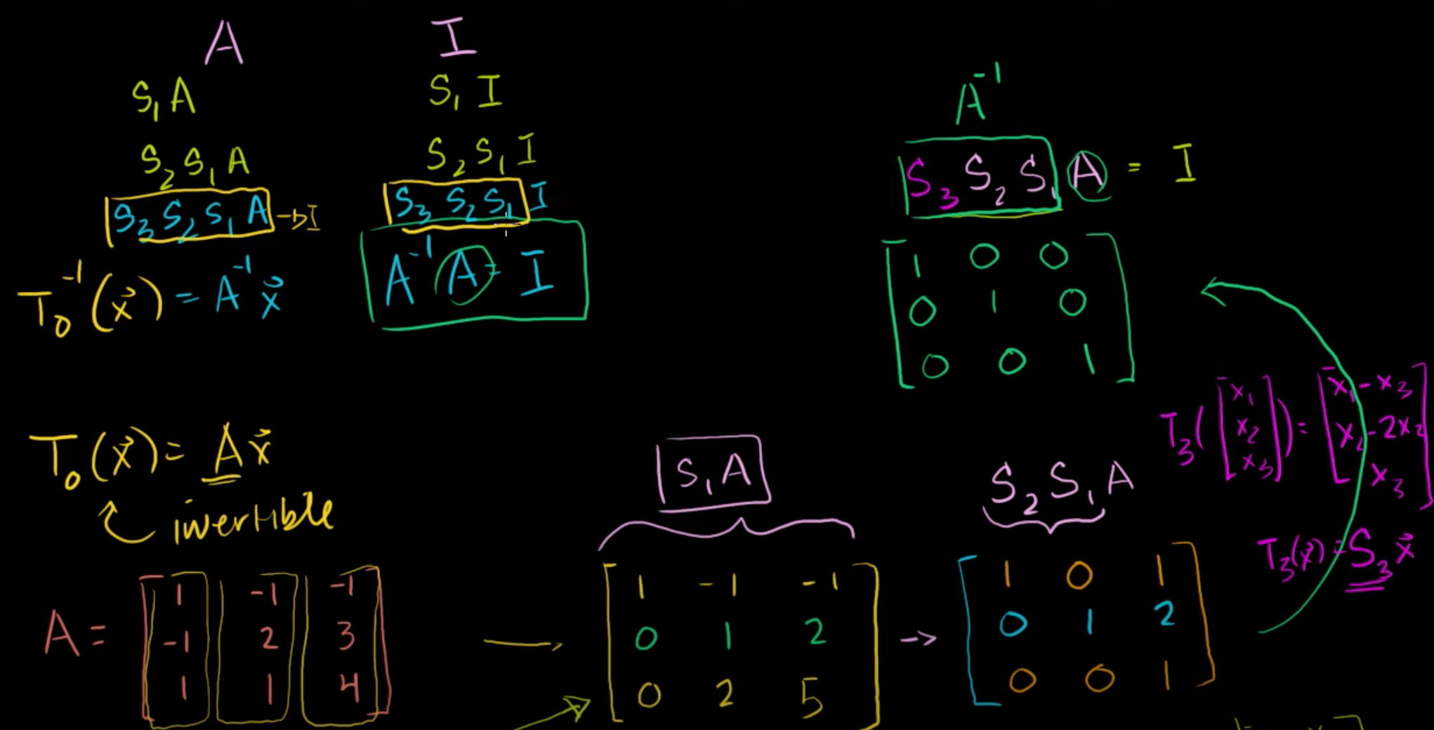 따라서, (S3∘S2∘S1)∘A = I 가 되게 되고, (S3∘S2∘S1) = A-1과 같다.