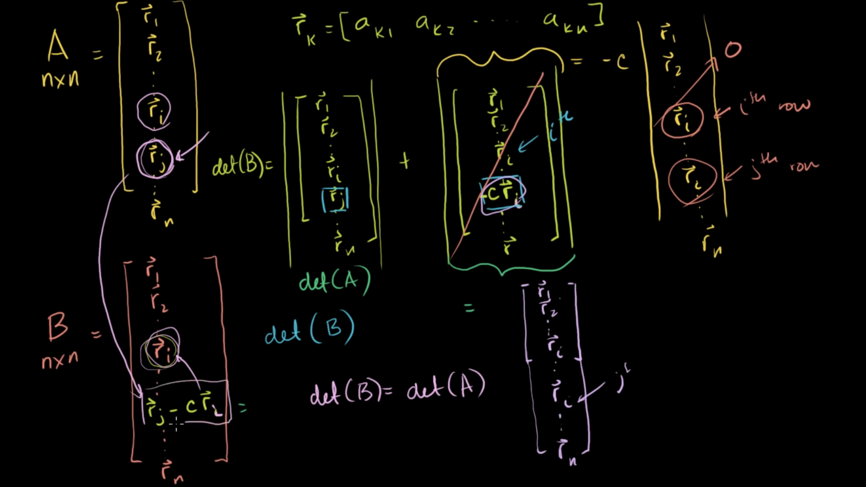 nxn의 행렬 B = [r1, r2, ..., ri, ..., rj-c*ri, ..., rn]이라고 하자.