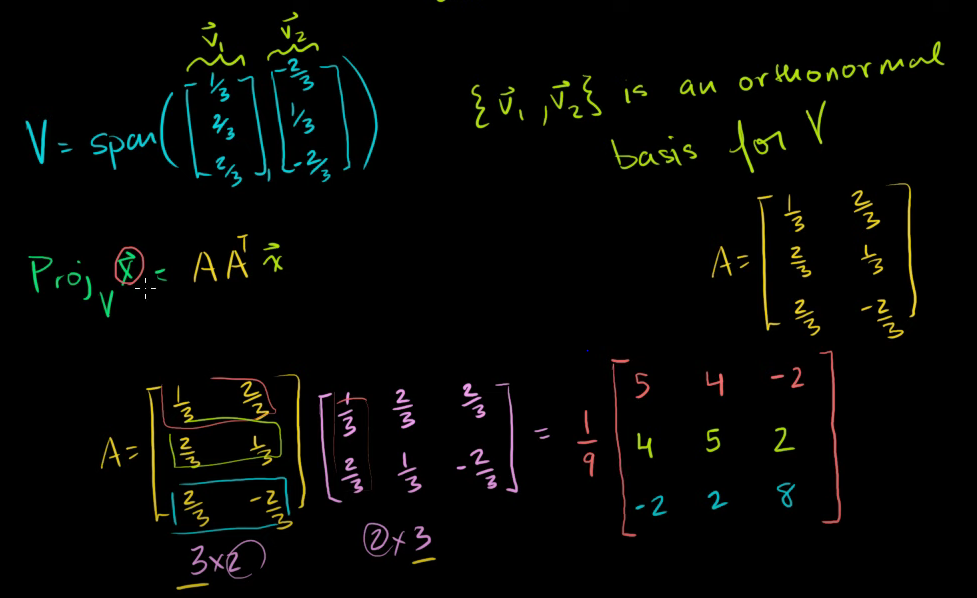 이런 식으로 부분공간 V에 대한 R3의 임의의 벡터의 정사영의 변환행렬을 구할 수 있다.