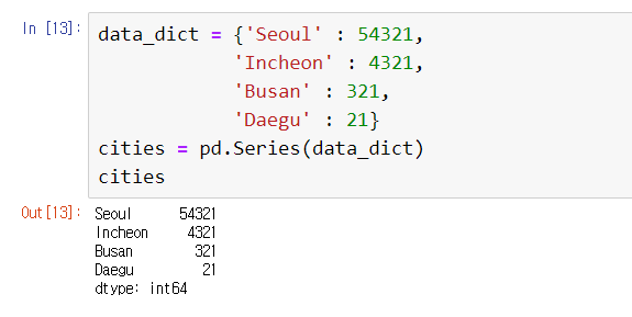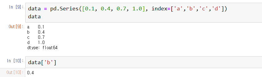 인덱스를 키라고 생각한다면, Series배열은 딕셔너리형 객체라고 생각해도 무방하다.