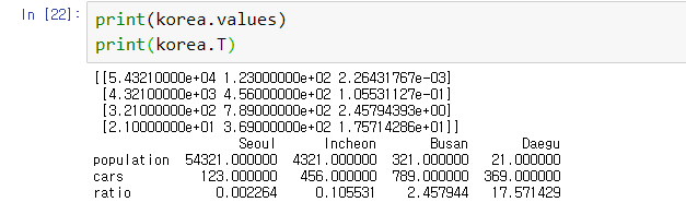 DF.T -> 행과 열을 바꾸기